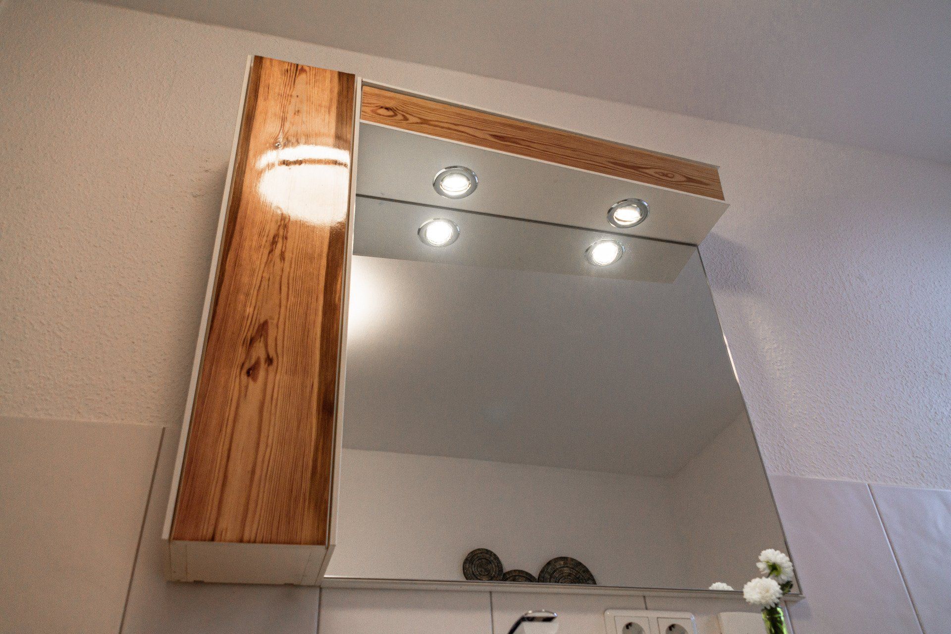 Die Öffnung zum Fenster durch die asymetrische Gestaltung (links Schrank und rechts nur Spiegel) gibt dem großen Spiegel natürliches LIcht und damit optimalen Schminkkomfort.