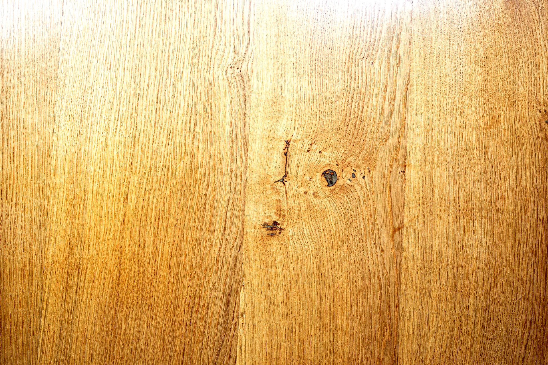 Die Tischplatte ist aus alter Eiche gefertigt worden, dadurch hat sie einen besonders warmen Farbton. Die Platte mit 2x1m wirkt besonders, weil sie aus vier Stücken Holz besteht, die im Durchschnitt 25 cm Breite haben. Damit entsteht eine klare und gleichmäßige Optik, die die Schönheit der Maserung zur vollen Geltung bringt. Der Unterschied ist besonders deutlich im Verhältnis zu schmalen, industriell hergestellten Platten, die in der Regel aus 6 cm breiten Holzstreifen gefertigt werden. Das hat zur Folge, dass die Flächen dieser Platten eine sehr unruhige Gesamtoptik haben.