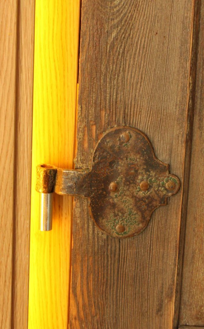 Das Lichtband ist komplett in Altholz realisert, sodass das indirekte Licht im Holz nochmals eine Verstärkung des Warmtones bekommt. Die Höhe des Lichtbandes ist so gewählt, dass die oberen Türen dezent in den HIntergrund treten. Der alte Fensterladen ist das Highlight, das direkt beim Öffnen des Raumes empfängt und den Blick bindet. Die Schönheit und der Charakter des Licht- und Schattenwurfes hat uns selbst überrascht.